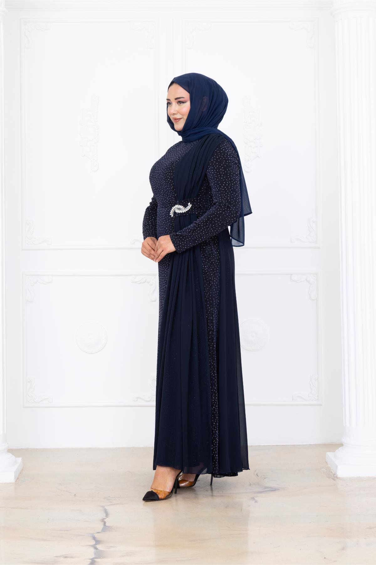Nil Tesettür Abiye (AMH1096-LACİVERT)