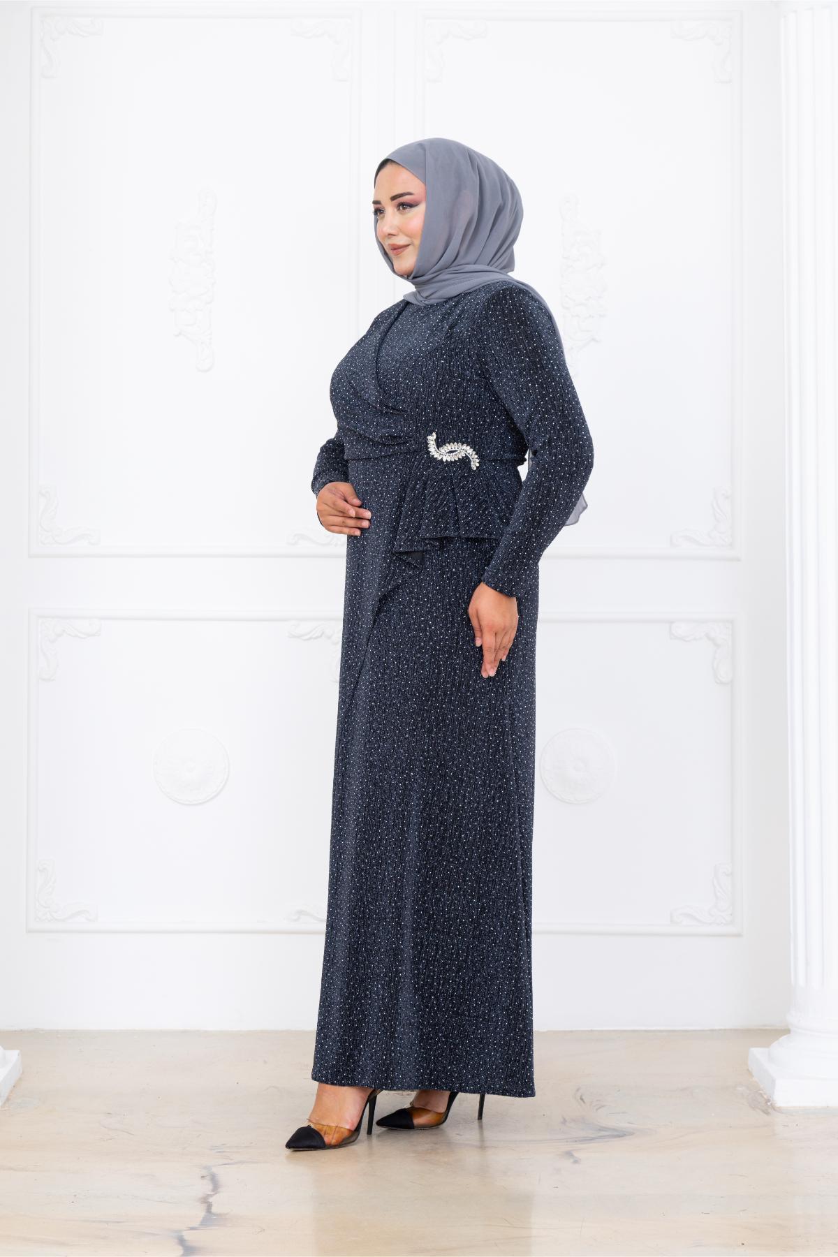 Roza Tesettür Abiye (AMH1098-ANTRASİT)