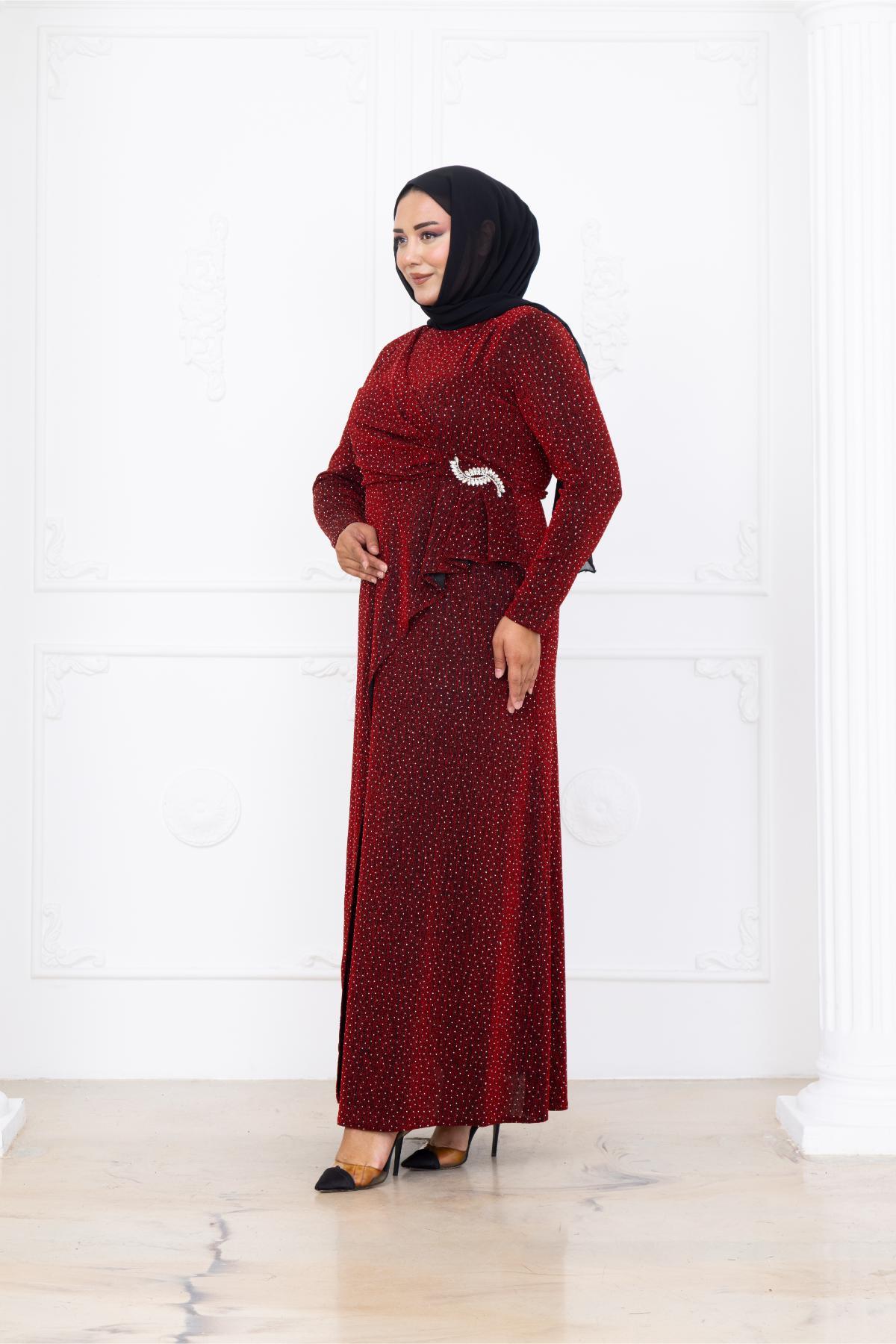 Roza Tesettür Abiye (AMH1098-BORDO)