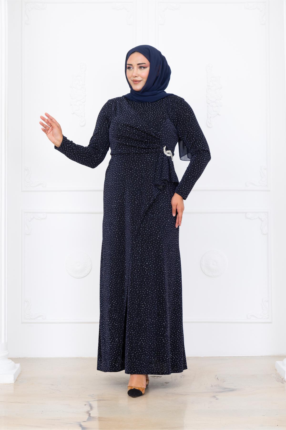 Roza Tesettür Abiye (AMH1098-LACİVERT)