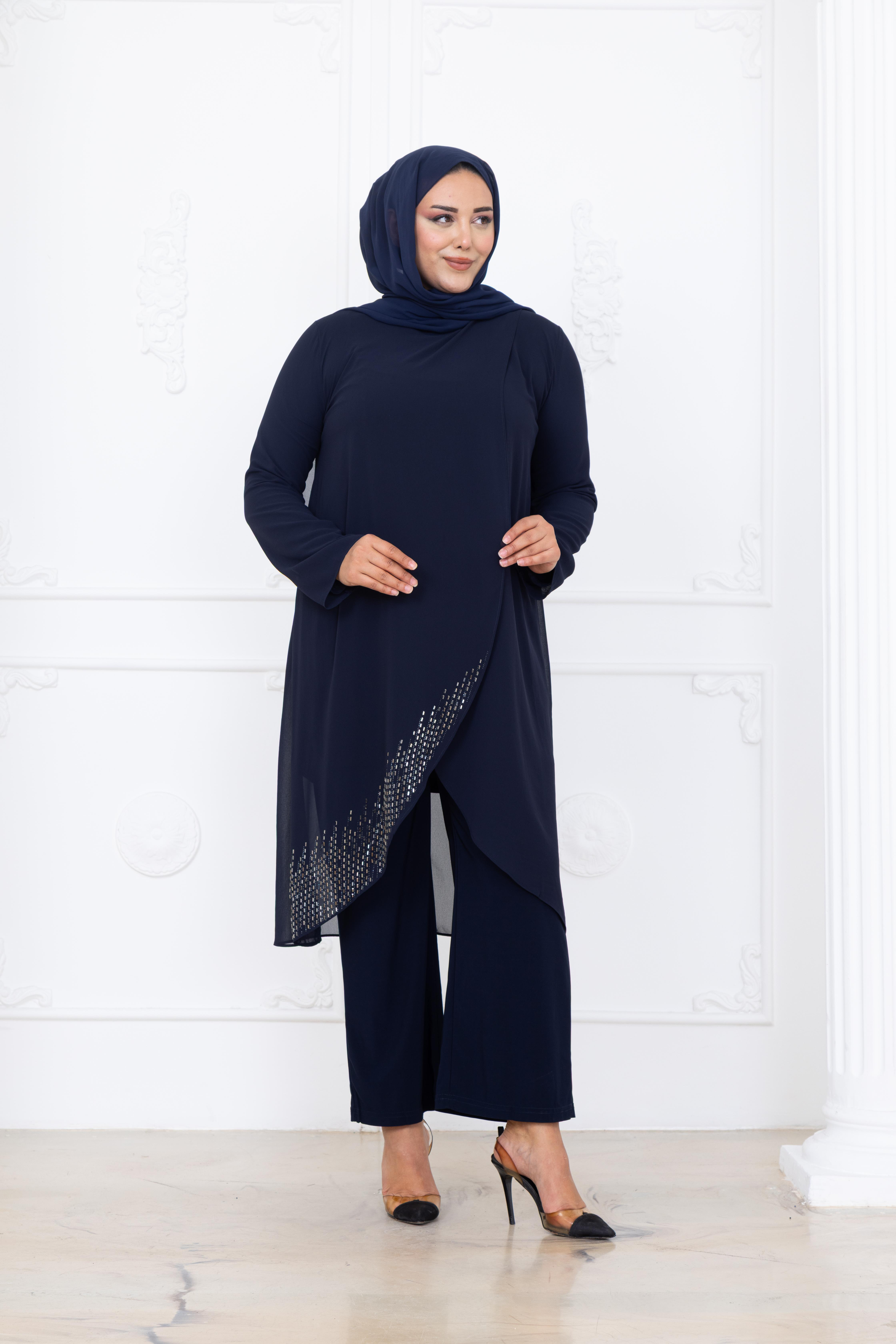 Esin Şifon Taşlı Tesettür Takım AMH1082 (AMH1082-LACİVERT)