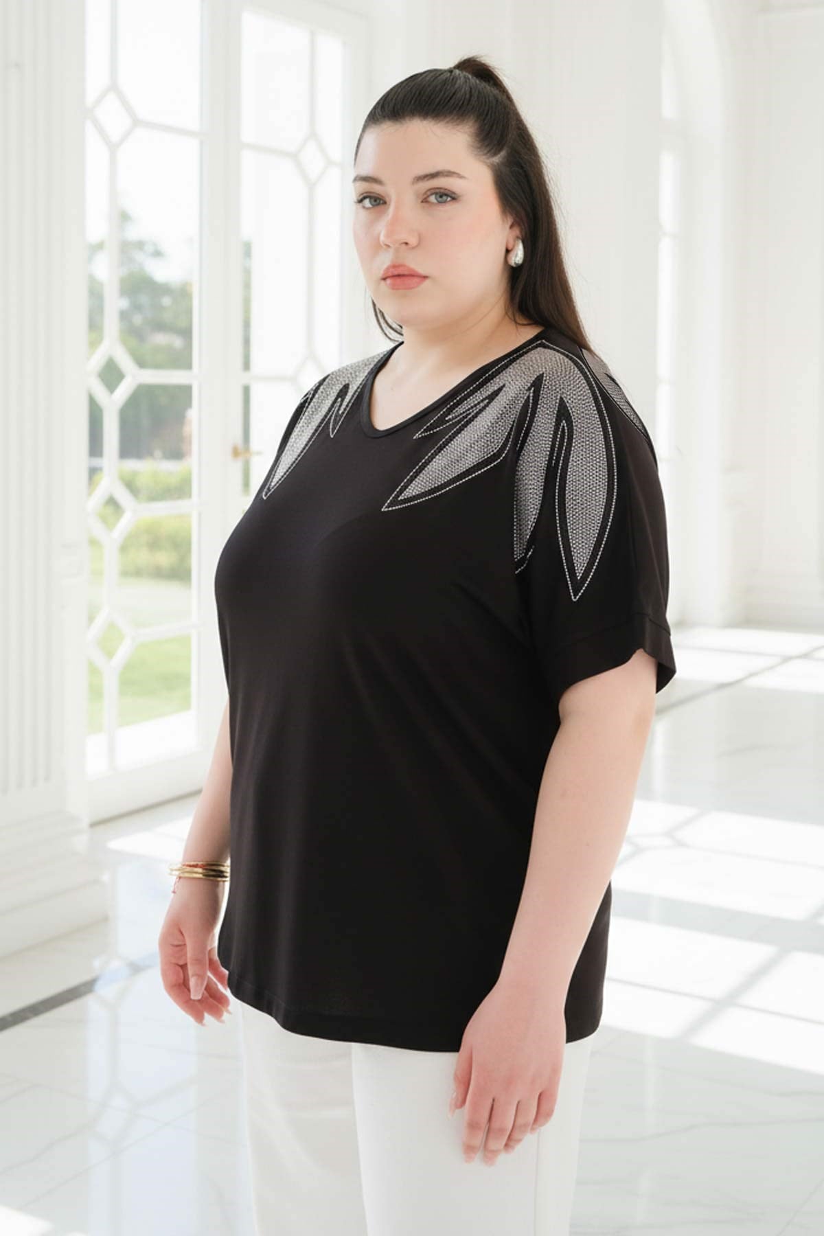 Siyah Parlak Omuz Detaylı BluzMDVB01-SiyahModaviki