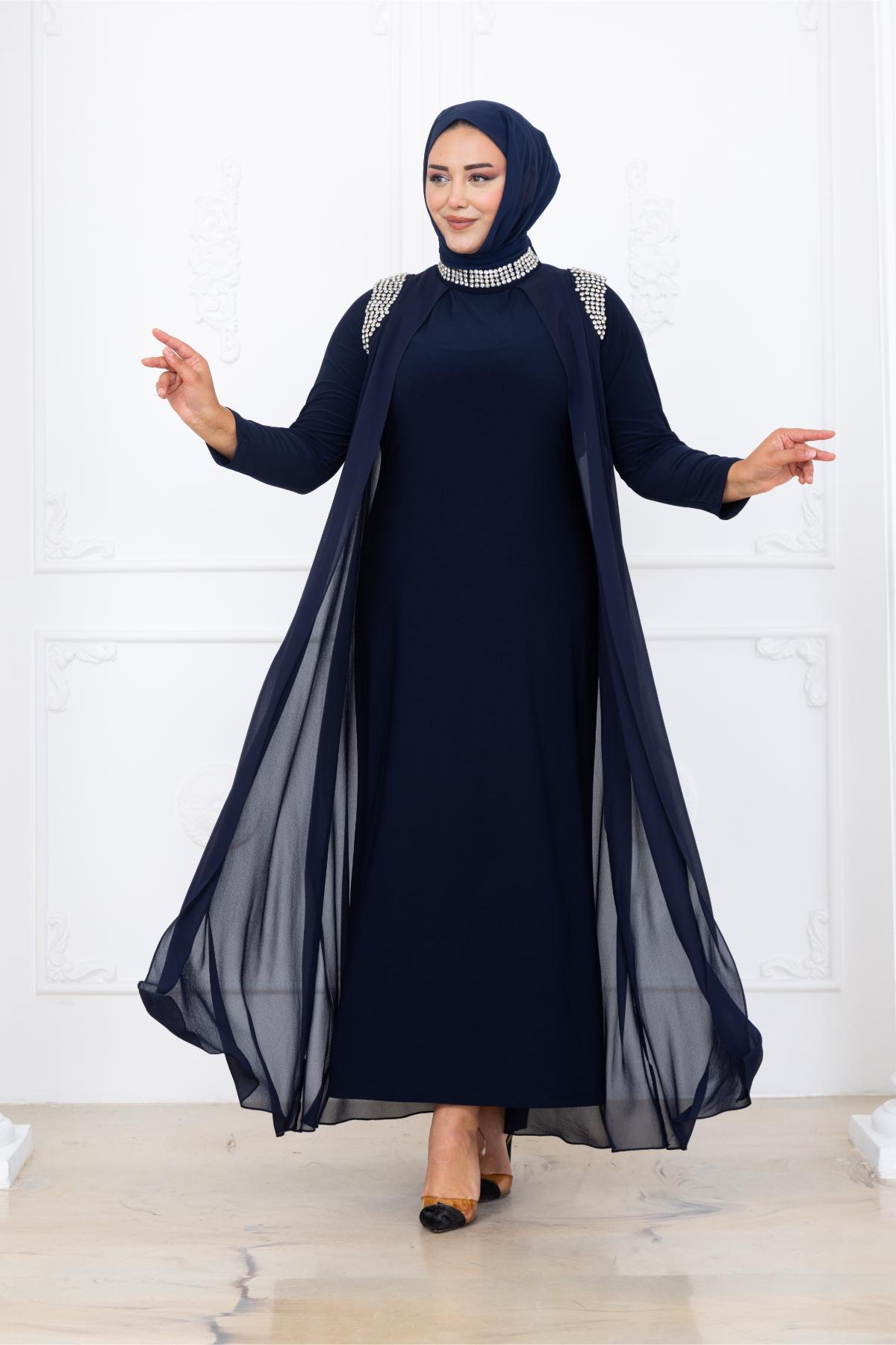 Zambak Şifon İncili Tesettür Abiye LACİVERT AMH1088 (AMH1088-LACİVERT)