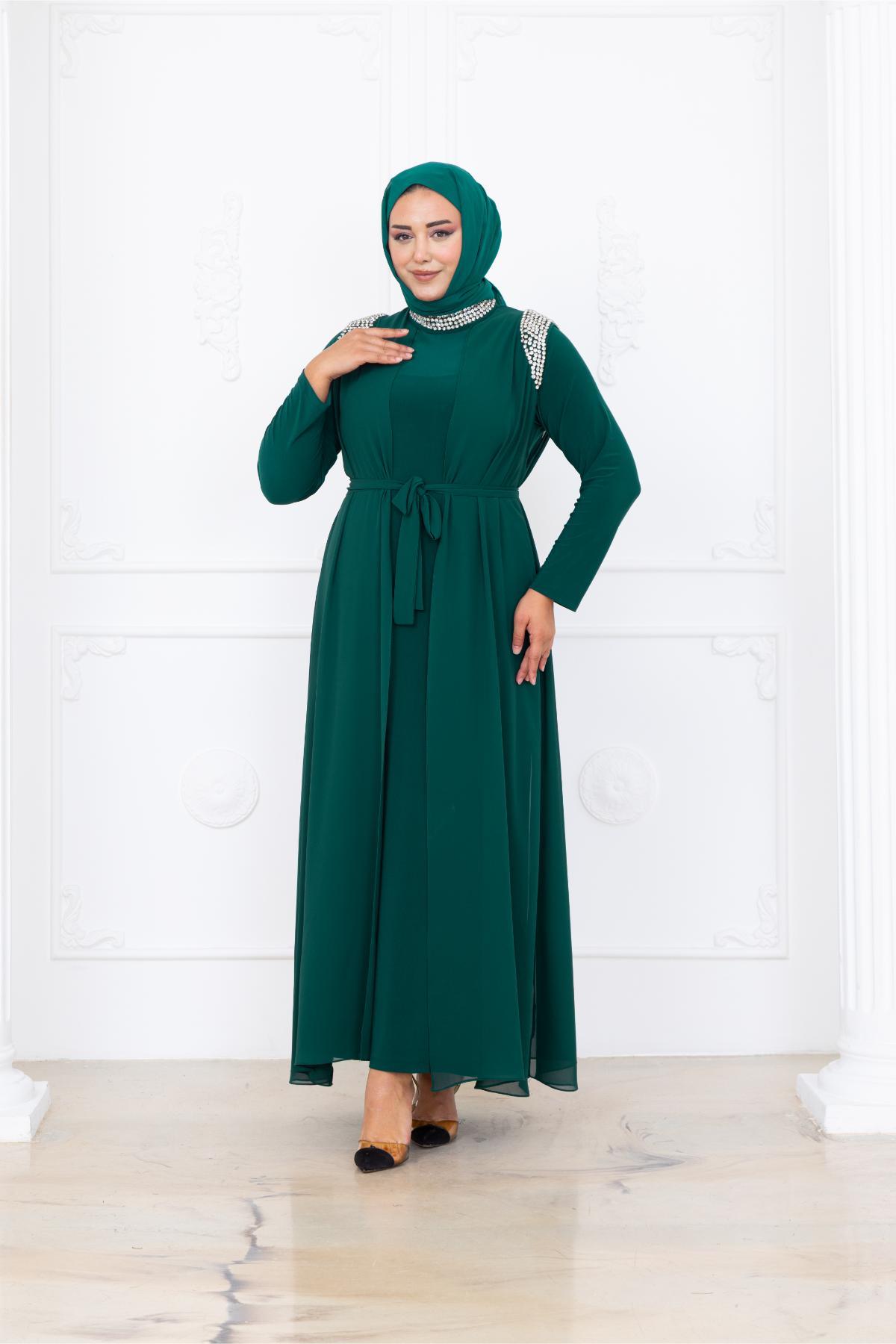 Zambak Şifon İncili Tesettür Abiye ZÜMRÜT AMH1088 (AMH1088-ZÜMRÜT)